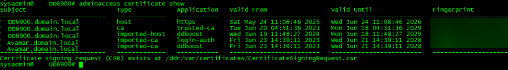 So we try multiple accounts, like the Sysadmin, SecurityAdmin, and DDBoost accounts, but none of these allows access. We login to our Avamar and see that it is still backing up servers without issues, so this tells us that the DDBoost account is working, as this is the account Avamar uses for backups, yet we can’t login with that account. Our only option to access the Data Domain is to use SSH to access the Command Line Interface or CLI.